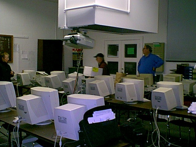 The CPCUG classroom at the Lone Oak Center (LOC), 1010 Grandin Avenue, Rockville, MD. has 12 modern Pentium computers on an Windows NT network, overhead projector attached to an instructor PC, and additional equipment to aid the training process. Most of the classes are "hands-on" classes with each student having their own PC to follow along with the instruction.