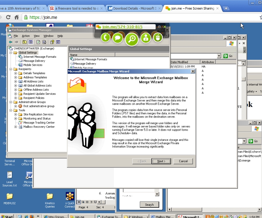 Exchange Server and then merge this data into mailboxes on another Microsoft