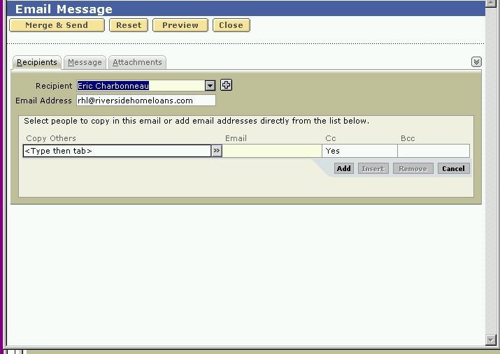 This takes you to the Email Message screen